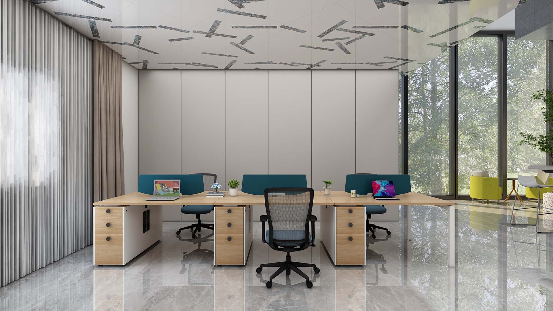 精简的设计,逼真的实木色彩,赋予办公空间自然的属性,附柜支撑台面的同时,储物采用开放与隐藏式收纳为主,附柜预留插座孔,可安装插座,满足日常的办公需求模块化产品设计,部件模块化组合,以黑白两种经典色调为主色黑白造型台脚和多种台面木纹颜色选择,满足不同环境的办公需求。